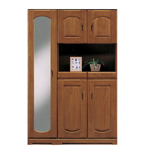 120 ハイシューズBOX サイズ幅117.9cmx奥行き40.3cmx高さ183.5cm 左側棚板サイズ:幅35×奥行29cm (中央固定棚板1枚・可動棚9枚) 右側棚板サイズ:幅74.5×奥行29cm (可動棚5枚) (ミラーサイズ:幅21.5×高さ153.5cm) 材質表面材:桐 原産国日本 カラーブラウン 備考天板:厚さ35mm 約24足収納可能 送料送料無料(一部地域を除く)※北海道・東北別途送料がかかります。
