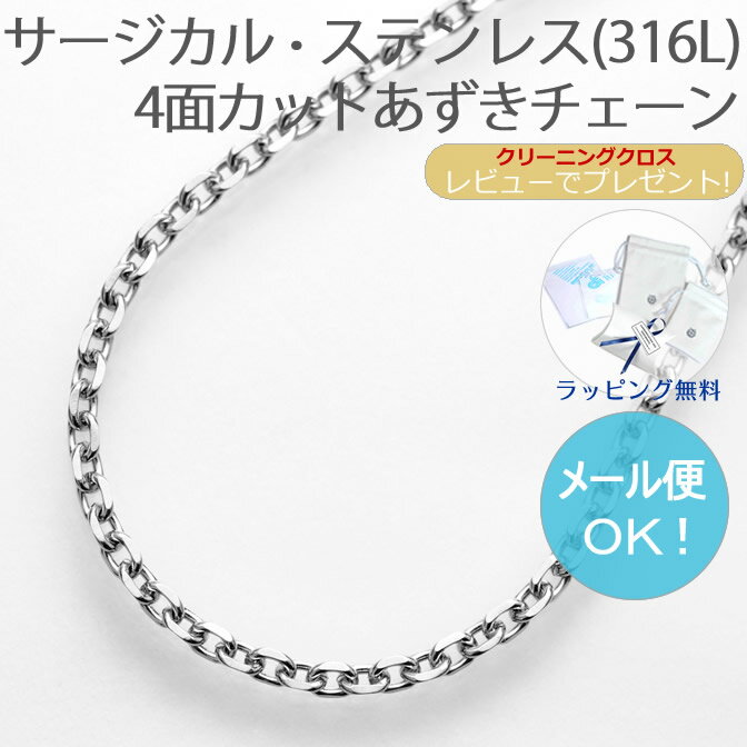 品名 メール便可 4面カットあずき(アズキ 小豆)チェーンネックレス サージカル ステンレス(SUS316L) 幅2.7ミリ長さ45cm 素材 サージカル ステンレス(SUS316L) 付属品 プレゼントラッピング・シルバー保存袋・携帯ポーチの中からどれか1つをお選びいただけます 金具種類 ロブスター金具付き