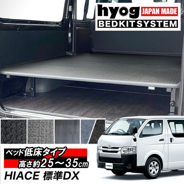 必ずお読みください メーカー hyog ヒョーグ(自社工場にて生産) 商品内容 ・3段階高さ調節機能 ベッドフレーム ×左右2本 ・4分割ベッドマット ・土台固定用ノブ付ボルト×4 ・高さ調節用ノブ付ボルト ×4 ・取り扱い説明書 1枚 【素材】 スチール・24mm合板(低ホルムアルデヒト) 防滑フロアシートまたは重歩行用フロアシート 【重量】約40kg 【サイズ】W:約1500mm D:1830mm(4分割) 【適合車種】 ハイエース200系・レジアスエース200系 DX3/6 【年式】 200系 1型〜6型 全年式対応 ※DXの場合、床面の凹凸により、傾く場合がございます。