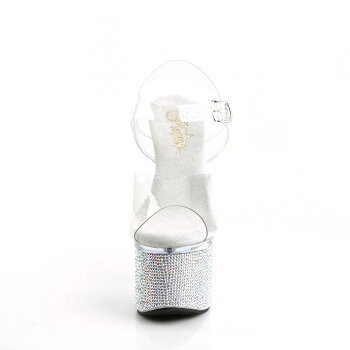 キャバ サンダル 厚底 Pleaser プリーザー 18 cm ヒール ハイヒール ピンヒール 透明 クリア 銀 シルバー キラキラ きらきら ラインストーン 厚底 超厚底 オープントゥ アンクルストラップ レディース メンズ 大きいサイズ 女装 ESTEEM-708DM ESTM708DM/C/C-SRS 取寄