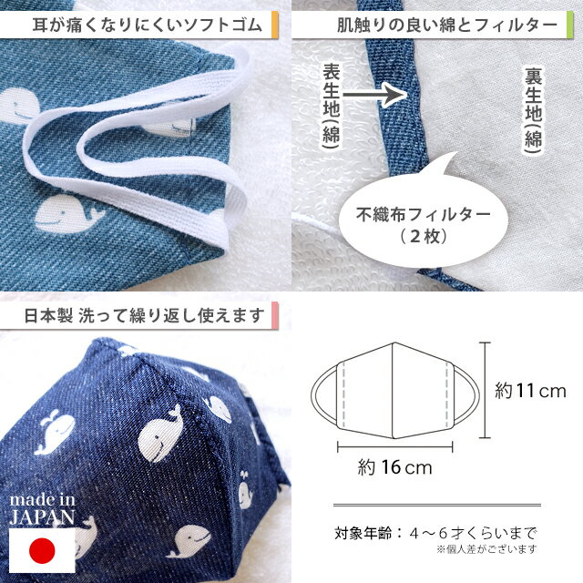 4~6才くらい向け日本製の洗える子供用立体布マスク。