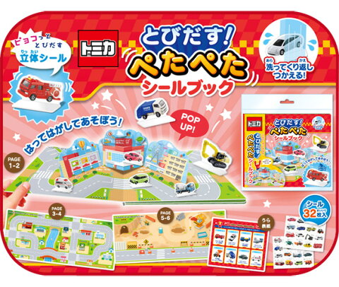 4973107484041 ls@GIN-733とびだす!ぺたぺたシールブック 絵本 トミカ シール はがせる 子供 幼児 知育玩具 おすすめ 男の子 2歳 1歳 3歳 トミカ はってはがせるTT-PTTF 484-004ページを開くと、飛び出すしかけのシールブックです。